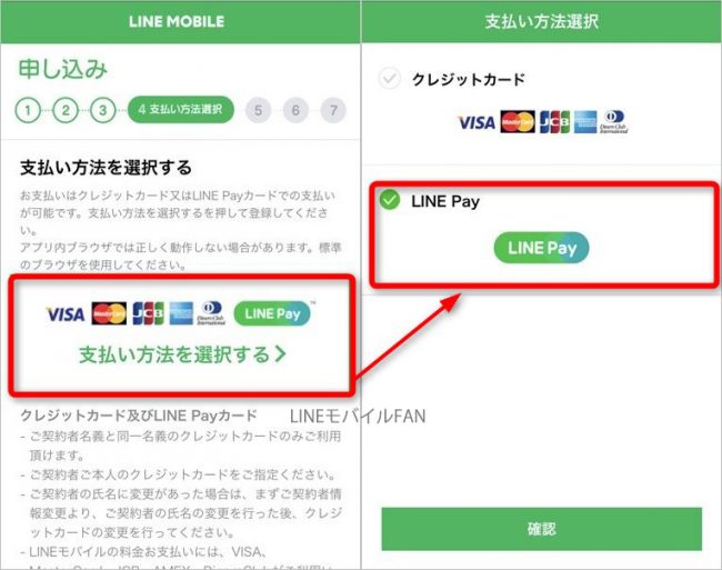 クレジットカードの名義とLINEモバイル契約者の名前が一致していること