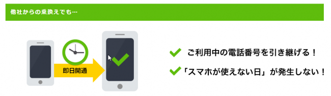 au・ドコモ・ソフトバンク回線すべてのキャリアに対応しているため、初めての格安SIMでもかんたんに乗り換えられるようになっています。