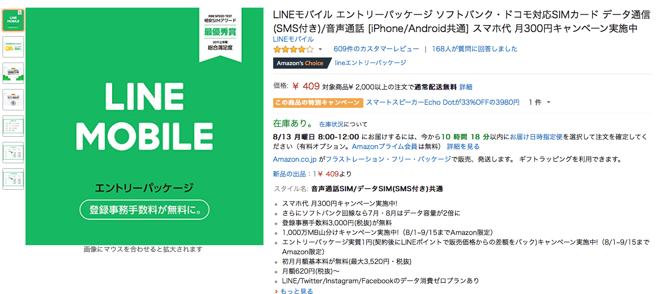 しかし、Amazonやヨドバシカメラなどのwebサイトで販売されているLINEモバイルのエントリーパッケージを使用することで登録事務手数料の3,300円を無料にできます。